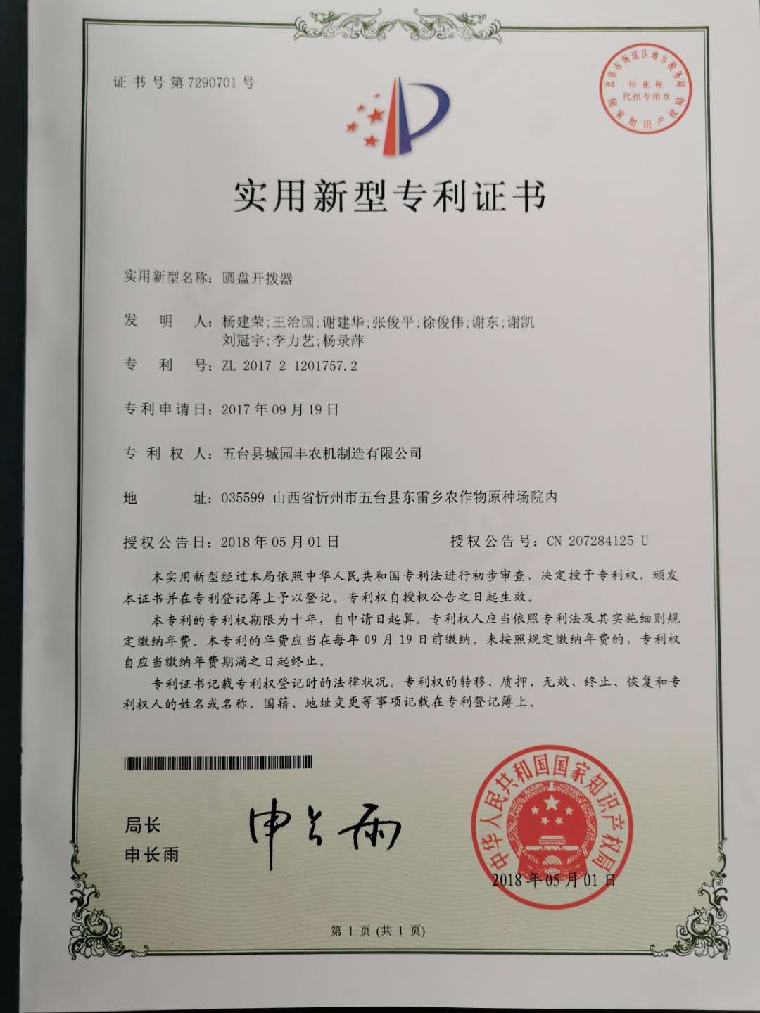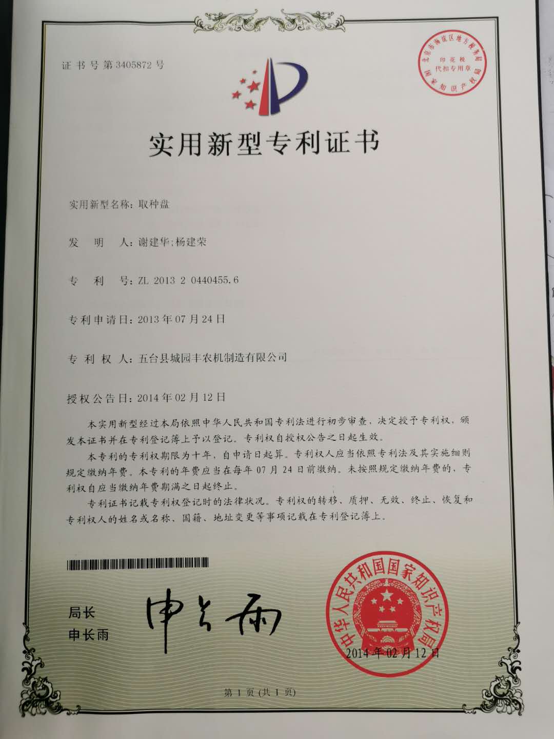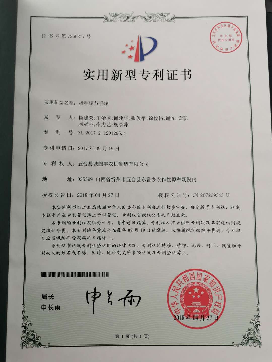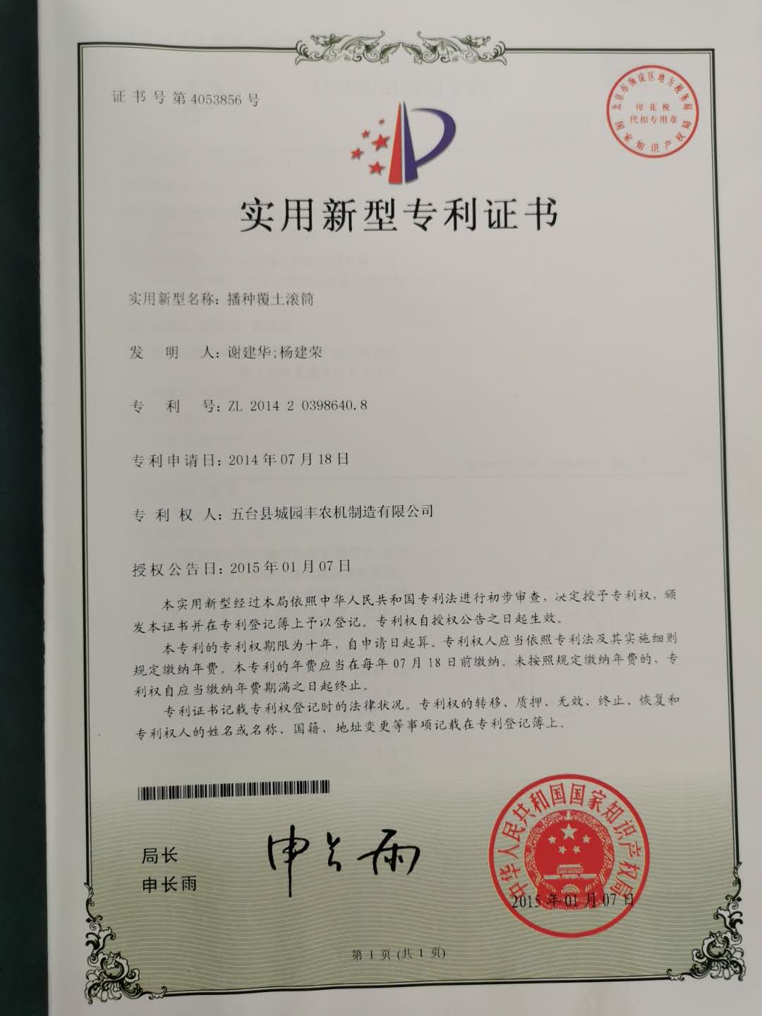 公司的主要產(chǎn)品玉米鋪膜精量播種機的研發(fā)制造推廣獲得了2013年忻州市科學技術(shù)進步獎、一項發(fā)明專利及5項實用新型專利等。